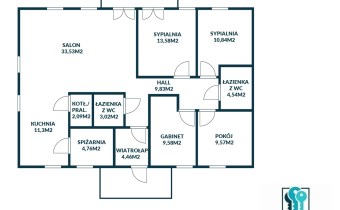 Powierzchnia pokoi 33;13;10;9;9 m2