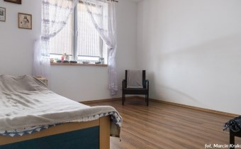 Na poddasze prowadzą solidne, drewniane schody. Na górze znajdują się dwa pomieszczenia – jeden duży pokój oraz jeden mniejszy – obecnie w stanie niewykończonym, co daje możliwość aranżacji według własnych potrzeb.