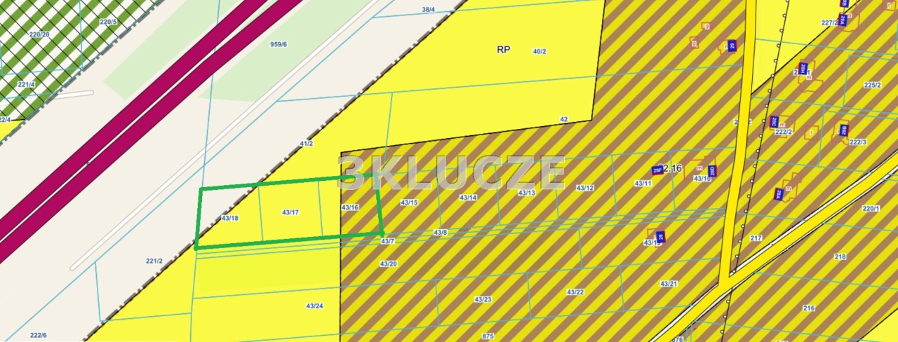 Działki posiadają księgę wieczystą oraz objęte są miejscowym planem zagospodarowania przestrzennego, wg którego pierwsza z działek znajduje się częściowo w terenie zabudowy rolniczej MR z dopuszczeniem m.in. zabudowy mieszkaniowej MN , obiektów usług komercyjnych UC, obiektów usług publicznych UP i in. jako uzupełnienie przeznaczenia podstawowego; pozostała część działki oraz dwie kolejne działki znajdują się w terenie upraw polowych RP bez prawa zabudowy.