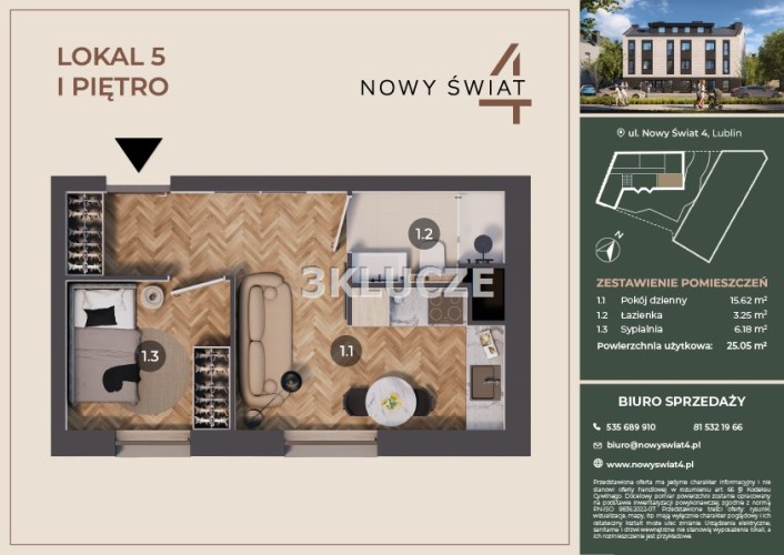 Na sprzedaż lokal inwestycyjny o pow. 25,05 m2 w nowej inwestycji deweloperskiej w Śródmieściu Lublina - ul. Nowy Świat.