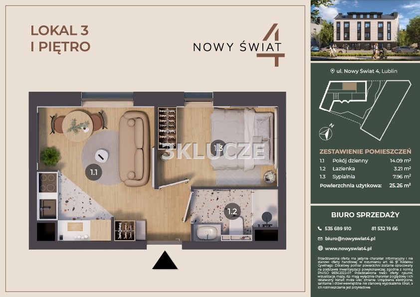 Na sprzedaż lokal inwestycyjny o pow. 25,26 m2 w nowej inwestycji deweloperskiej w Śródmieściu Lublina - ul. Nowy Świat.