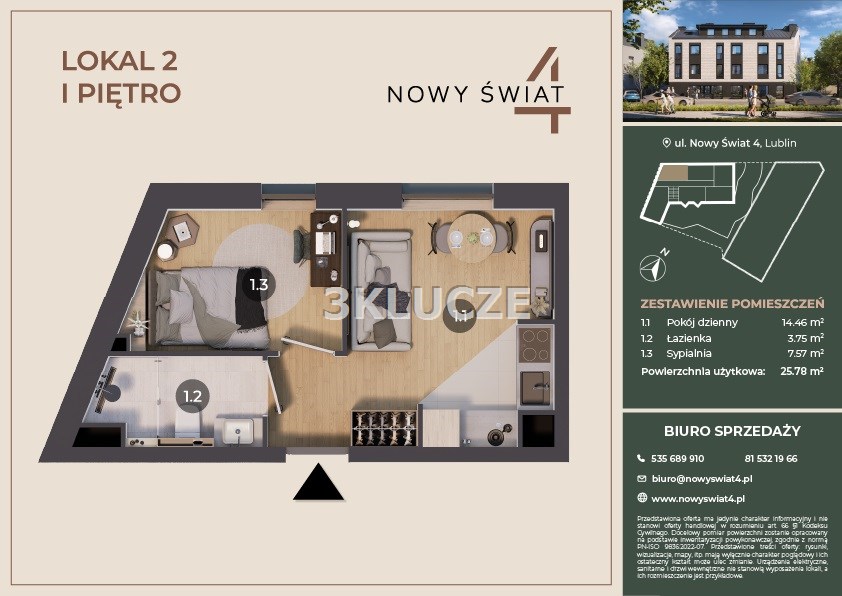 Apartament nr 2 o pow. 25,78 m2