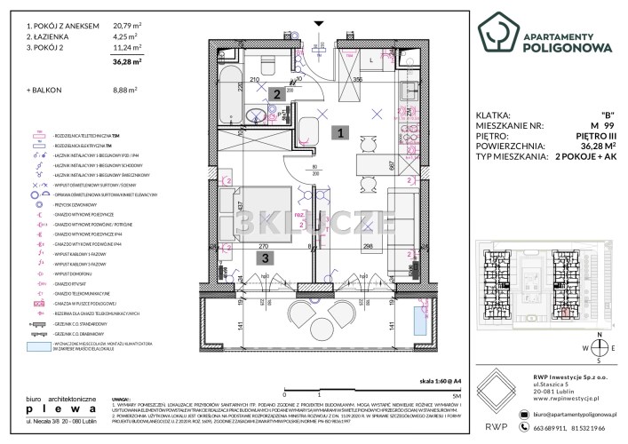 0% PROWIZJI OD KUPUJĄCEGODwupokojowe mieszkanie na III piętrze budynku w trakcie realizacji na Botaniku. Salon z aneksem kuchennym o pow. 20,79m2 z wyjściem na balkon. Sypialnia o pow. 11,24m2. Łazienka z WC 4,25m2.