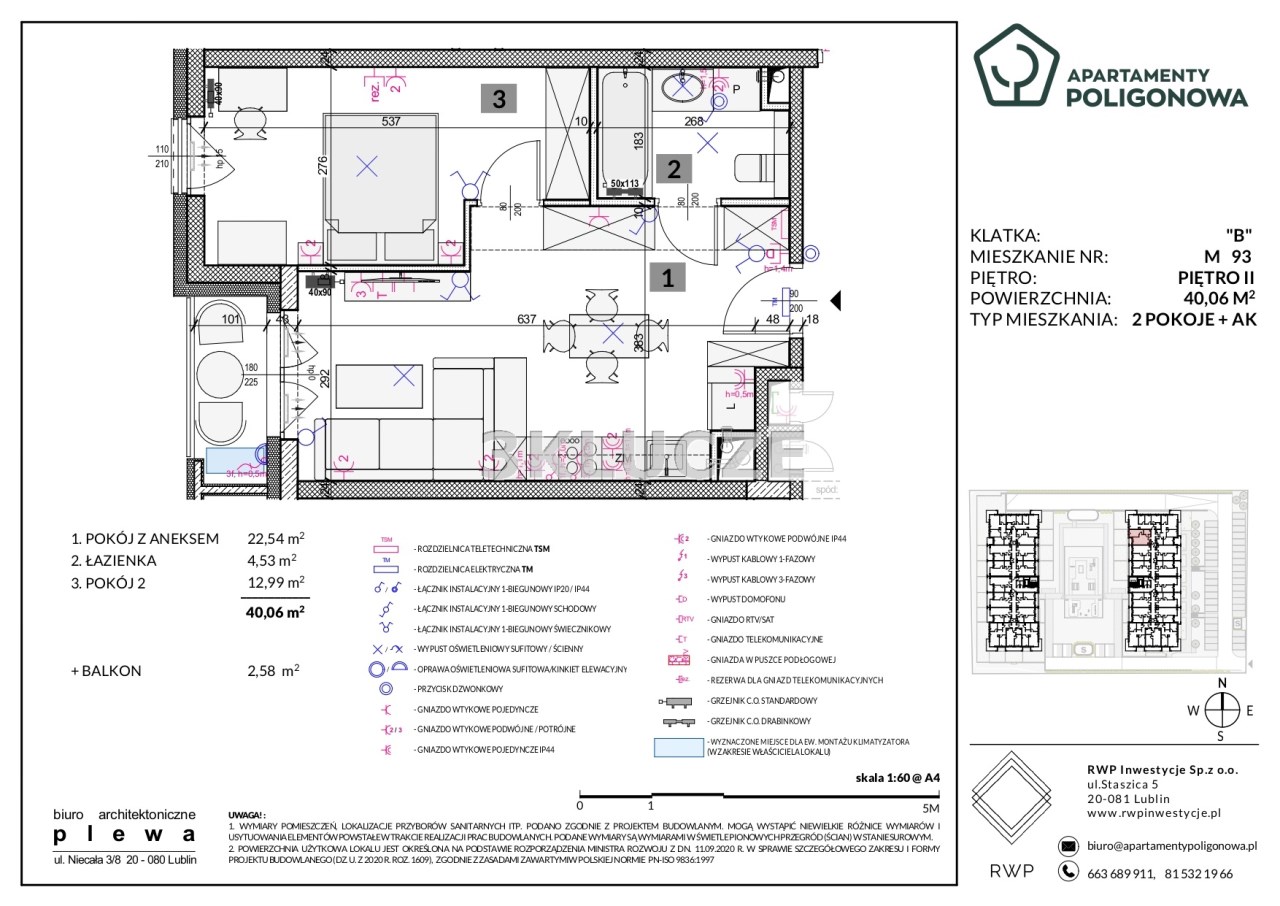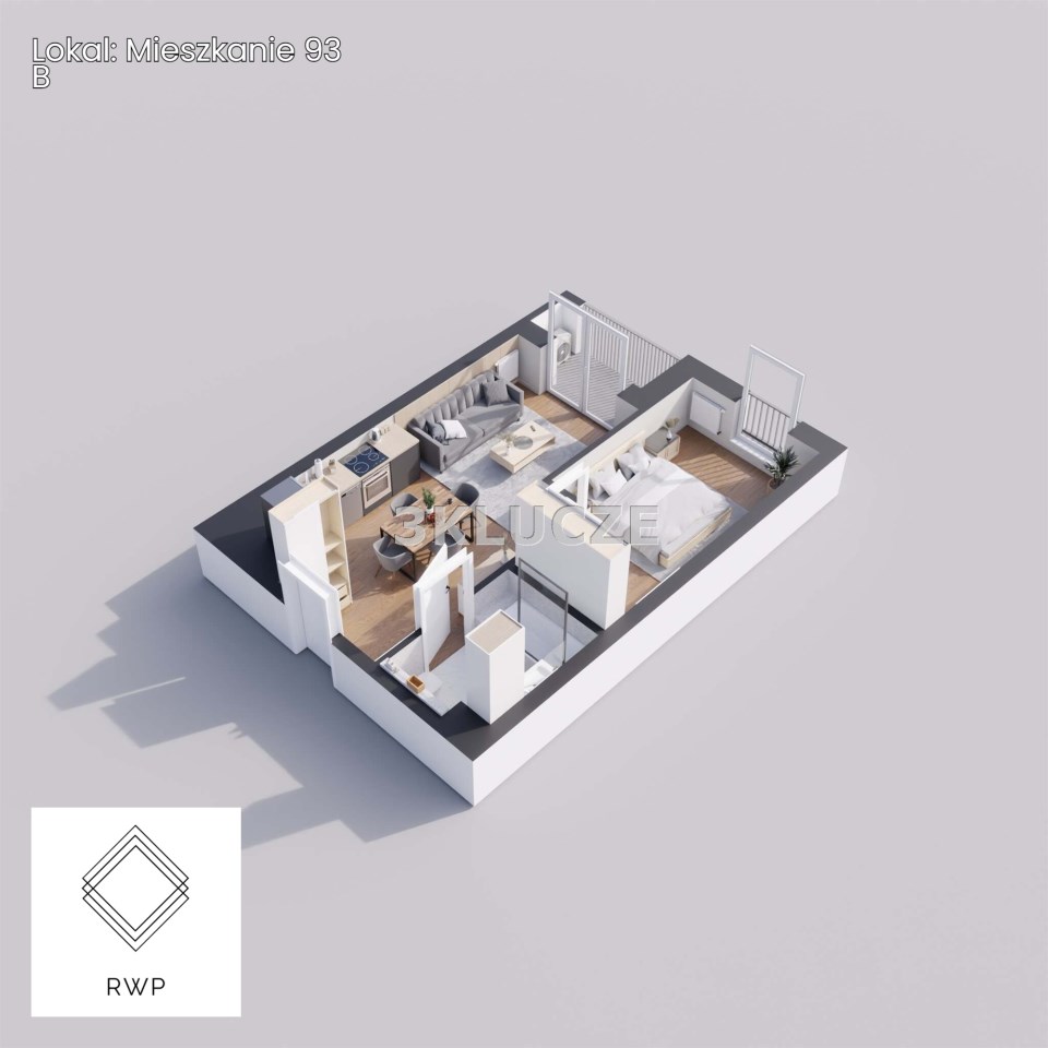 Dwupokojowe mieszkanie na II piętrze budynku w trakcie realizacji na Botaniku. Salon z aneksem kuchennym o pow. 22,54m2 z wyjściem na balkon. Sypialnia o pow. 12,99m2. Łazienka z WC 4,53m2.Wystawa okien: zachód.