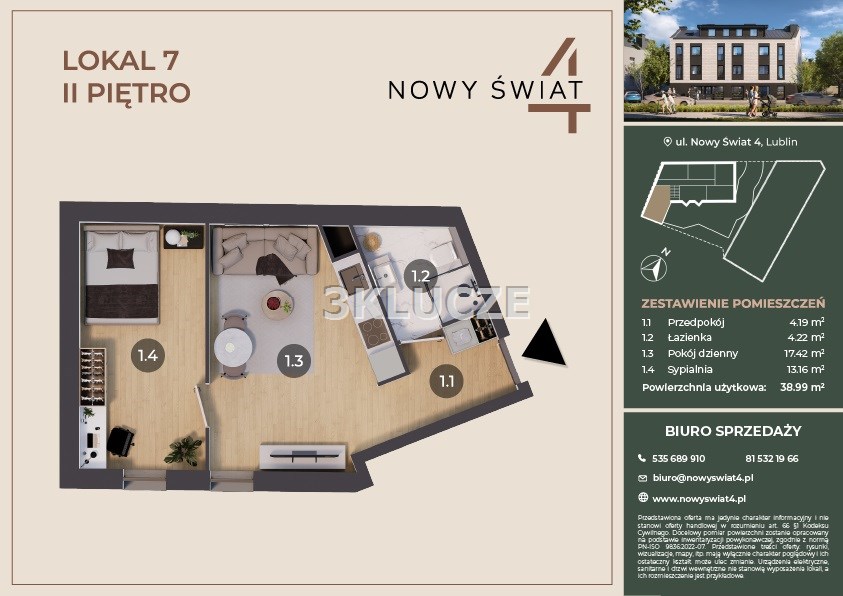 Na sprzedaż lokal inwestycyjny o pow. 38,99 m2 w nowej inwestycji deweloperskiej w Śródmieściu Lublina - ul. Nowy Świat.