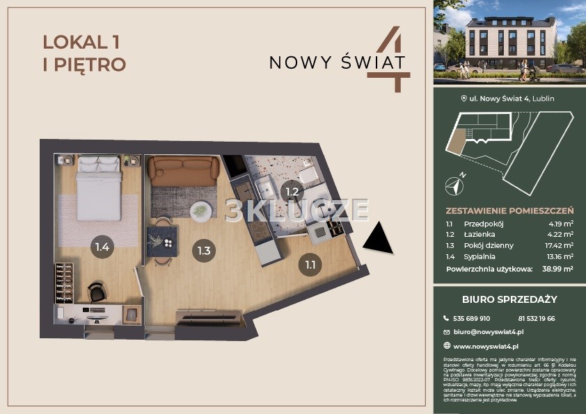 Na sprzedaż lokal inwestycyjny o pow. 38,99 m2 w nowej inwestycji deweloperskiej w Śródmieściu Lublina - ul. Nowy Świat.
