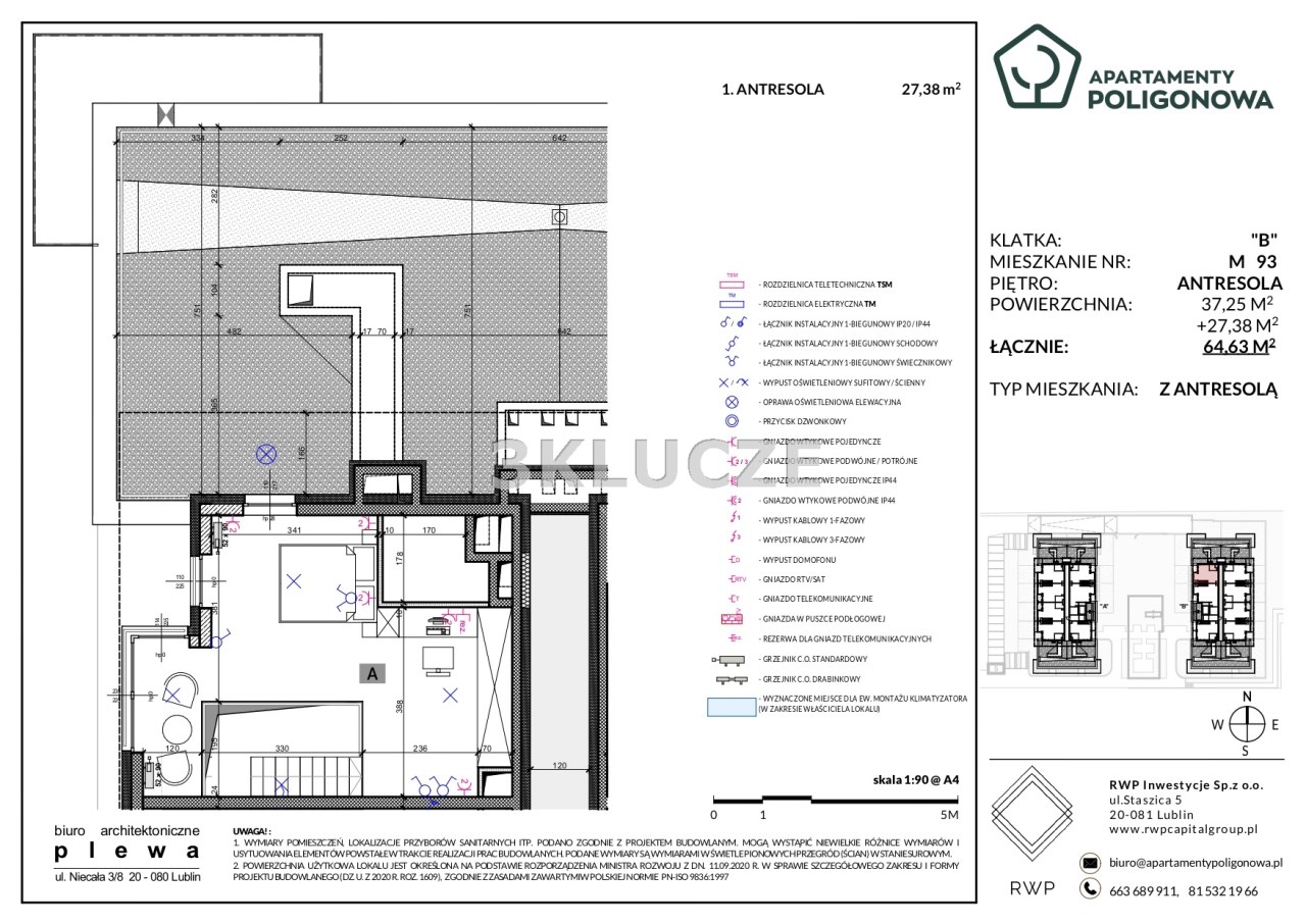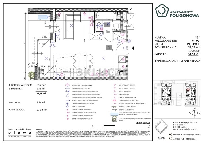 Mieszkanie z antresolą na III piętrze budynku w trakcie realizacji na Botaniku. Salon z aneksem kuchennym o pow. 37,25m2. Łazienka z WC 3,48m2. Antresola o pow. 27,38m2 z wyjściem na taras.Wystawa okien: zachód.