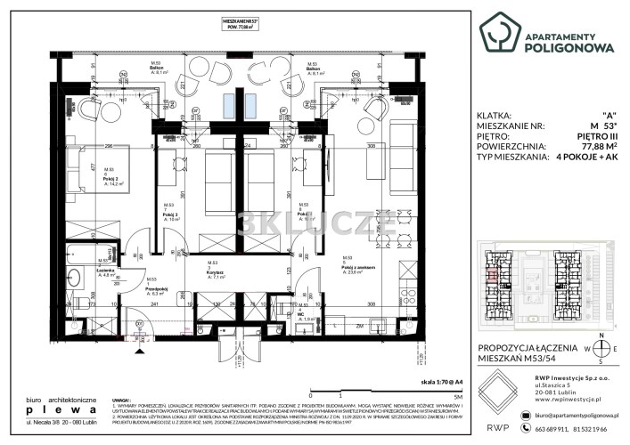 0% PROWIZJI OD KUPUJĄCEGOCzteropokojowe mieszkanie na III piętrze budynku w trakcie realizacji na Botaniku. Salon z aneksem kuchennym o pow. 23,6m2 z wyjściem na balkon. Trzy sypialnie o pow. 14,2m2, 10m2, 10m2. Łazienka 4,8m2, osobno WC 1,9m2.