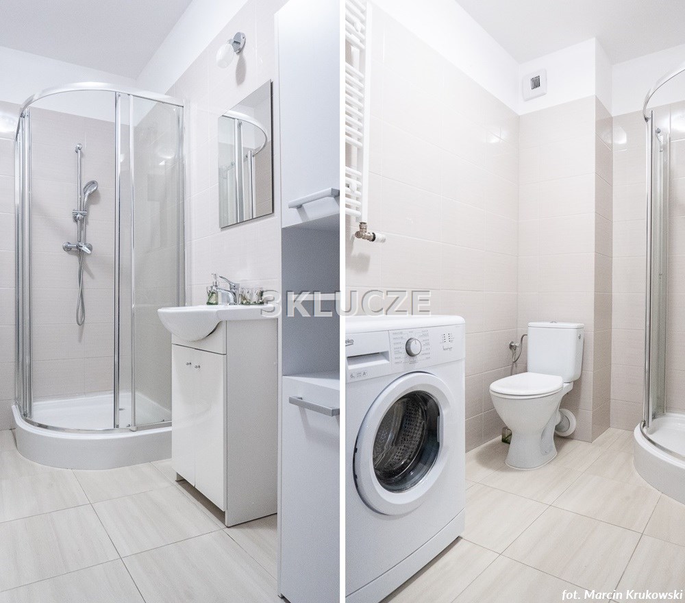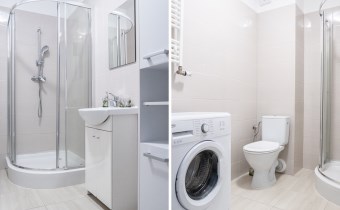 Wyposażenie łazienki pralka, kabina prysznicowa