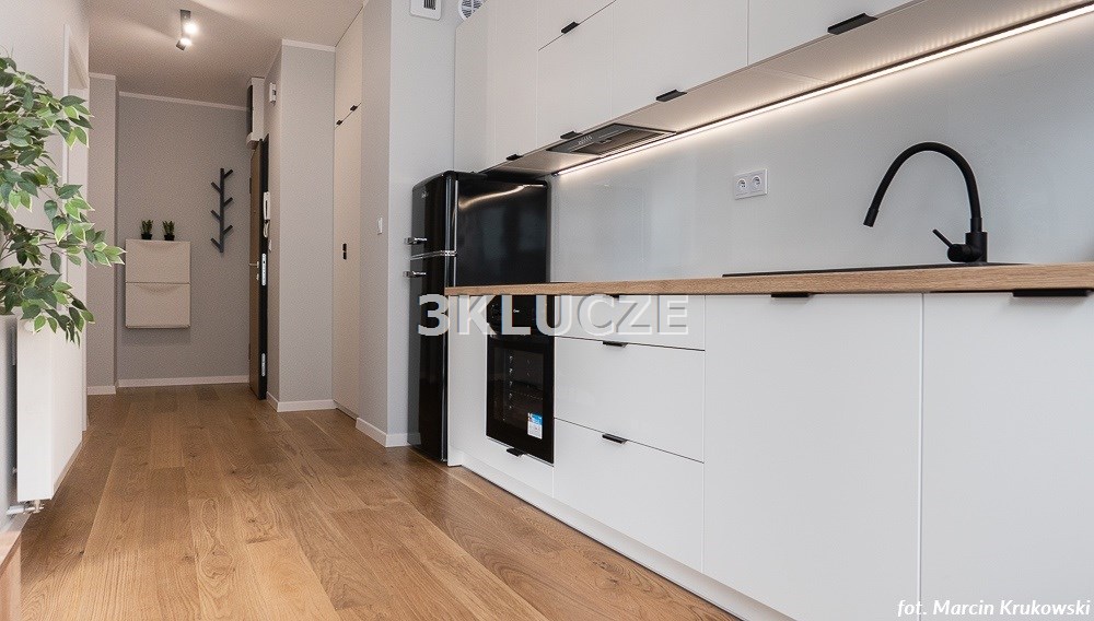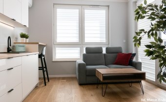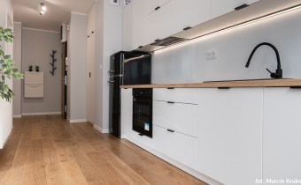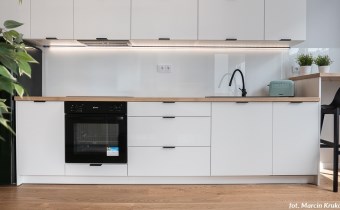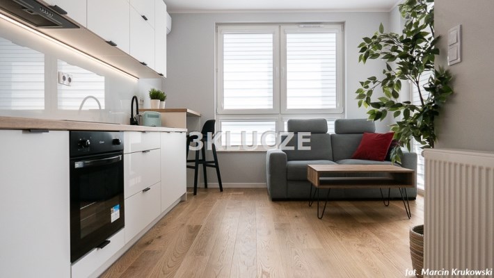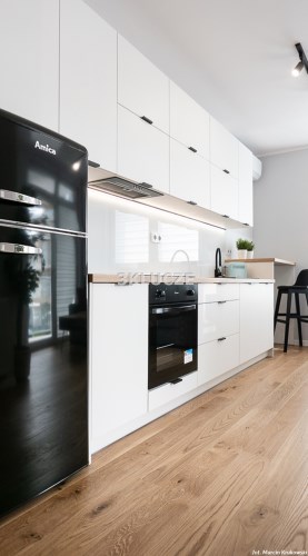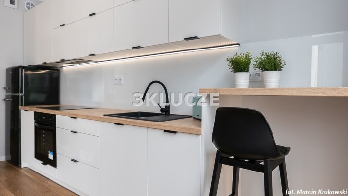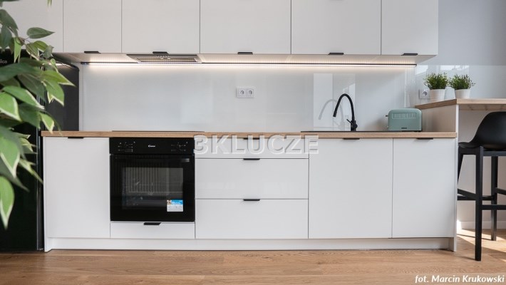 Dwupokojowe mieszkanie z wyjściem na loggięMieszkanie w pełni wyposażone i umeblowane. Aneks kuchenny połączony z salonem: zabudowa kuchenna, sprzęt AGD (lodówka, kuchenka, piekarnik), sypialnia, łazienka z wc (prysznic, pralka). Salon i sypialnia z wyjściem na loggię. Miejsce postojowe w garażu podziemnym i komórka lokatorska.
