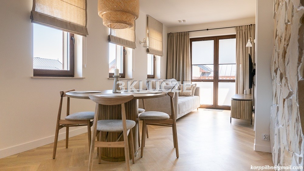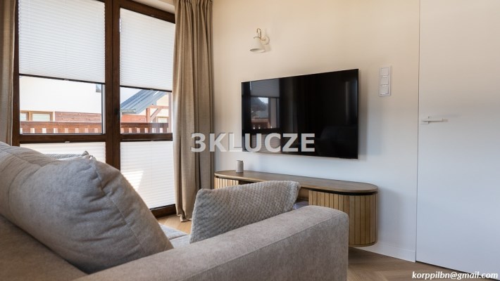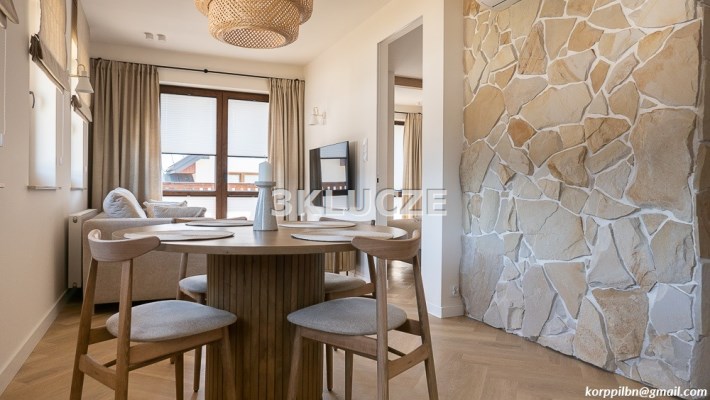 Dwupokojowy Apartament w NałęczowieAneks kuchenny połączony z salonem: zabudowa kuchenna, sprzęt AGD (lodówka, płyta indukcyjna, piekarnik, zmywarka), sypialnia, łazienka z wc (kabina prysznicowa, pralka). Mieszkanie wykończone wysokiej klasy materiałami z dbałością o szczegóły. Miejsce postojowe przed budynkiem.