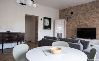 Trzypokojowe, klimatyczne mieszkanie przy ul. Okopowej. Salon z aneksem kuchennym (zabudowa meblowa i sprzęt AGD). Dwie sypialnie. Łazienka z WC (kabina prysznicowa, pralka, suszarka). Mieszkanie zaprojektowane przez architekta wnętrz z dbałością o szczegóły, z wysokiej klasy materiałów. Do mieszkania przynależy garaż i piwnica. Mieszkanie po generalnym remoncie.MEDIA: czynsz najmu 3900zł/mc + 750zł/mc czynsz administracyjny+ opłaty eksploatacyjne (prąd, gaz). Ogrzewanie gazowe, podłogowe.